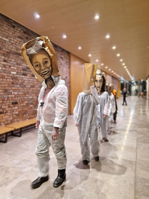 Art and Design/ Fashion created a series of face masks that were worn by Performing Arts students for performances on the day. The face masks were based on principal characters found in commedia dell'arte: Pantalone, Arlecchino, Innamorati (the lovers), Columbina, Dottore, Brighella, Capitano, and Pulcinella.